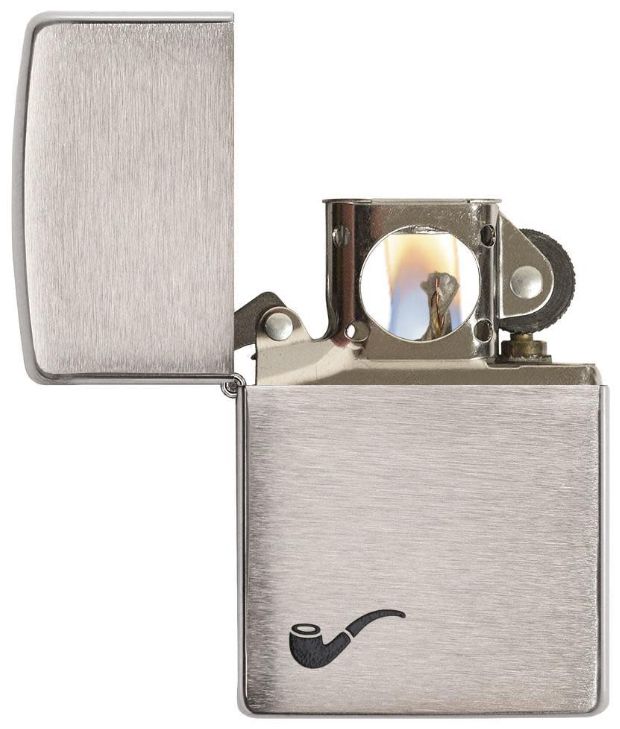 Designed for the special needs of pipe smokers. Zippo's pipe lighter collection includes pipe inspired designs with pipe inserts. The design of the pipe insert encases the flame in metal, allowing it to be drawn directly into the pipe without bending over the side and damaging the bowl. The design is done with color imaging and laser engraving imprint methods. Each lighter has a bottom stamp signifying the year it was made, is refillable, and backed by Zippo's famous lifetime guarantee. All windproof lighters are American made in the Bradford, PA factory and come packaged in a gift box. Uses lighter fluid (not included), not butane. Replaceable flint and refillable. Made in the USA.
